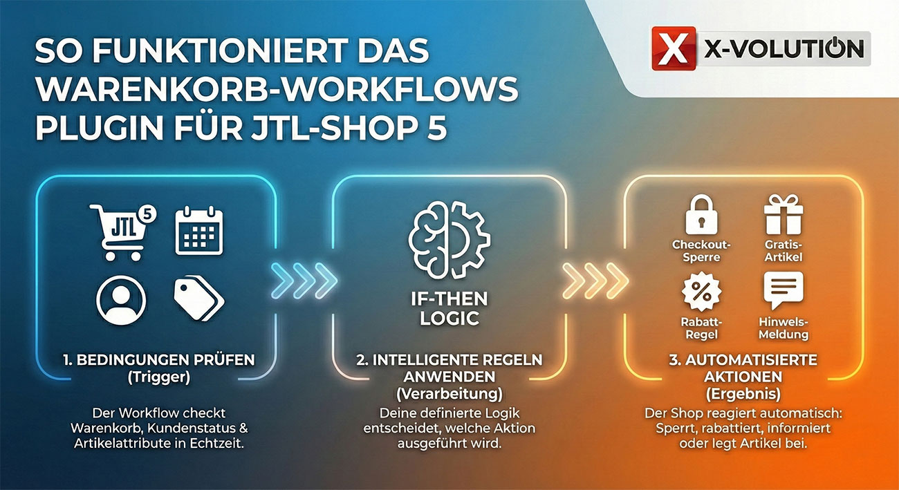 Du benötigst mehr als 3 Erweiterungen? Gar kein Problem. Jede Erweiterung ist unter folgendem Link separat erhältlich: https://shop.x-volution.de/Warenkorb-Workflows-Erweiterungen